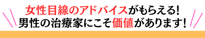 田村先生は数少ない女性治療家兼コンサルタントで、女性患者様の心理をリサーチされており、大好きな患者様に囲まれて仕事ができると感じ、話し方やテンポ、抑揚、気づかいなどがとても好印象で話を聞いてるうちにサポートをお願いしたいと思いました。
