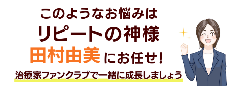 治療家ファンクラブのオススメポイントは、新規を追いかけているだけではダメだということが具体的にわかり、離脱を防ぐことに特化した女性目線での信頼関係の築き方などが学べて、現場できちんと実践できることだと思います。