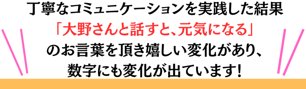 田村先生のアドバイスを実践することで、私自身気持ちに余裕ができ、お客さまの話をより丁寧に聴くことができるようになった結果、ご家族のお悩みなどもご相談いただけるようになりました。