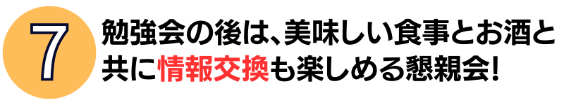 勉強会の後は、美味しい食事とお酒を楽しめるお店で懇親会を行います!